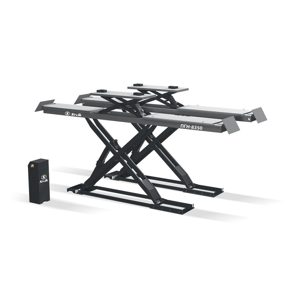 - Два гидроцилиндра обеспечивают плавный и синхронный подъем платформ