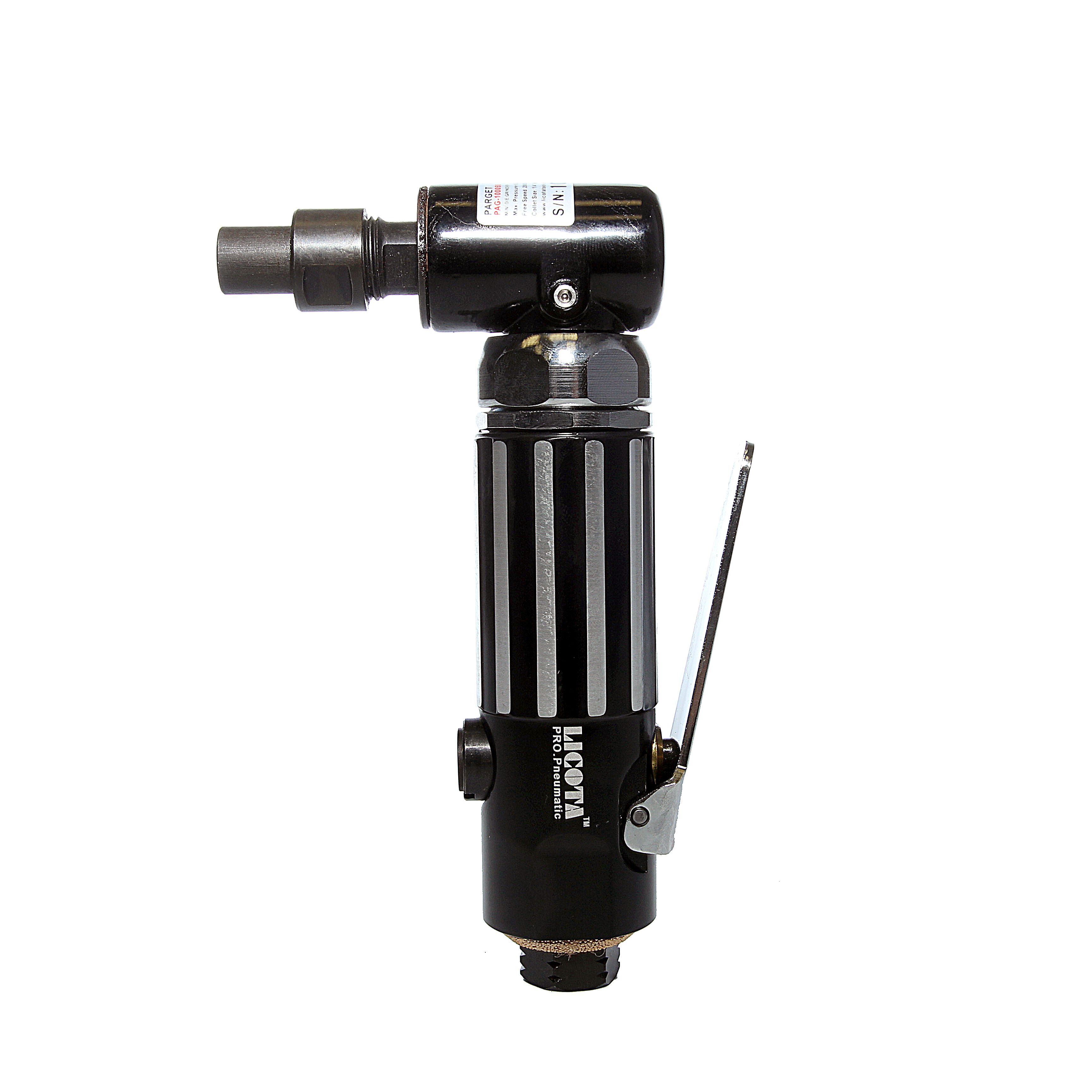 Бормашина пневматическая угловая с предохранителем Licota PAG-10005S в металлическом корпусе с цанговым зажимным патроном и рычажным включателем. Мощность - 220 Вт.