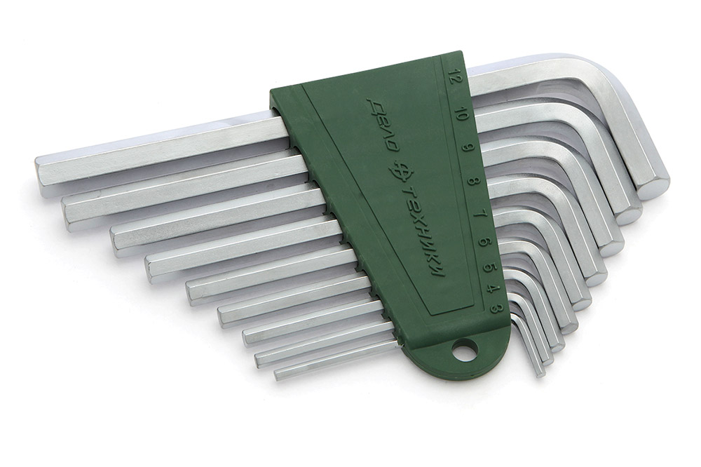 — угловые ключи шестигранные: 3, 4, 5, 6, 7, 8, 9, 10, 12 мм;