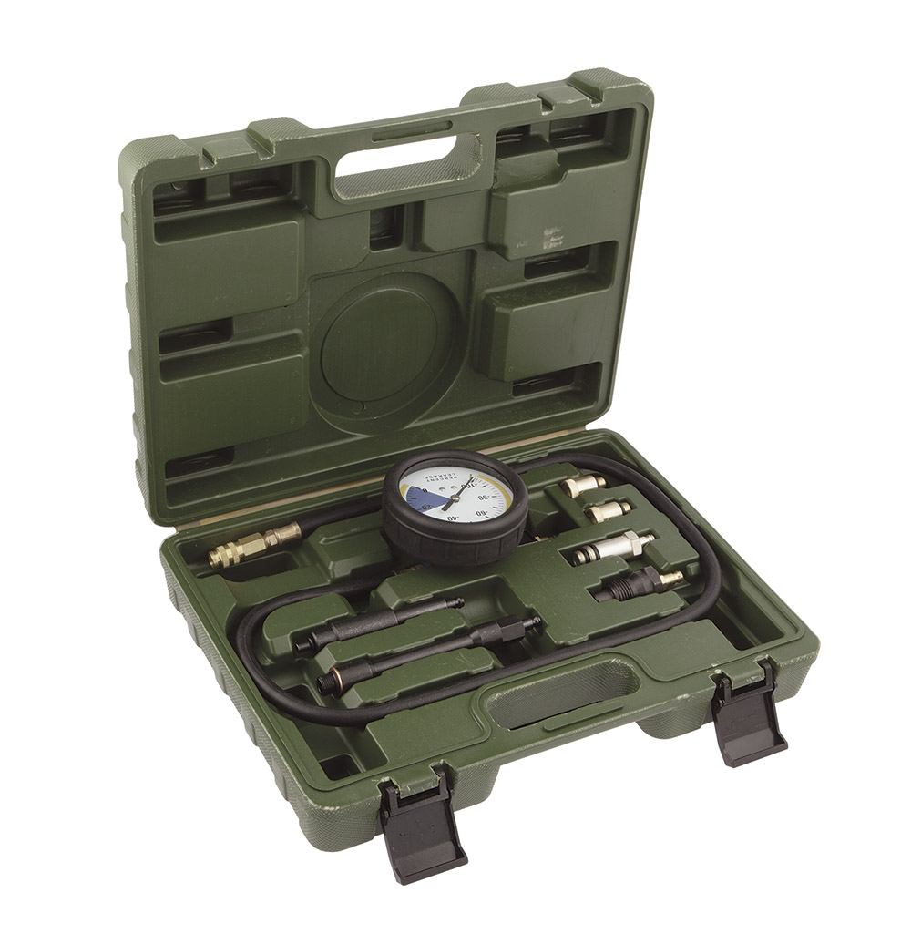 Набор комплектуется адаптерами с различными видами резьбовых соединений, что позволяет применять инструмент для диагностики большинства моделей двигателей.