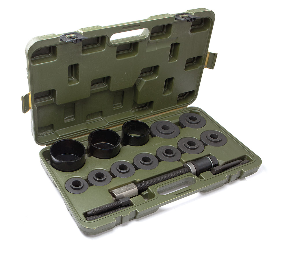 Набор применяется для замены подшипников ступицы колеса и снятия ступиц без демонтажа поворотного кулака и амортизационной стойки. Подходит для большинства легковых автомобилей, внедорожников и легкого коммерческого транспорта.