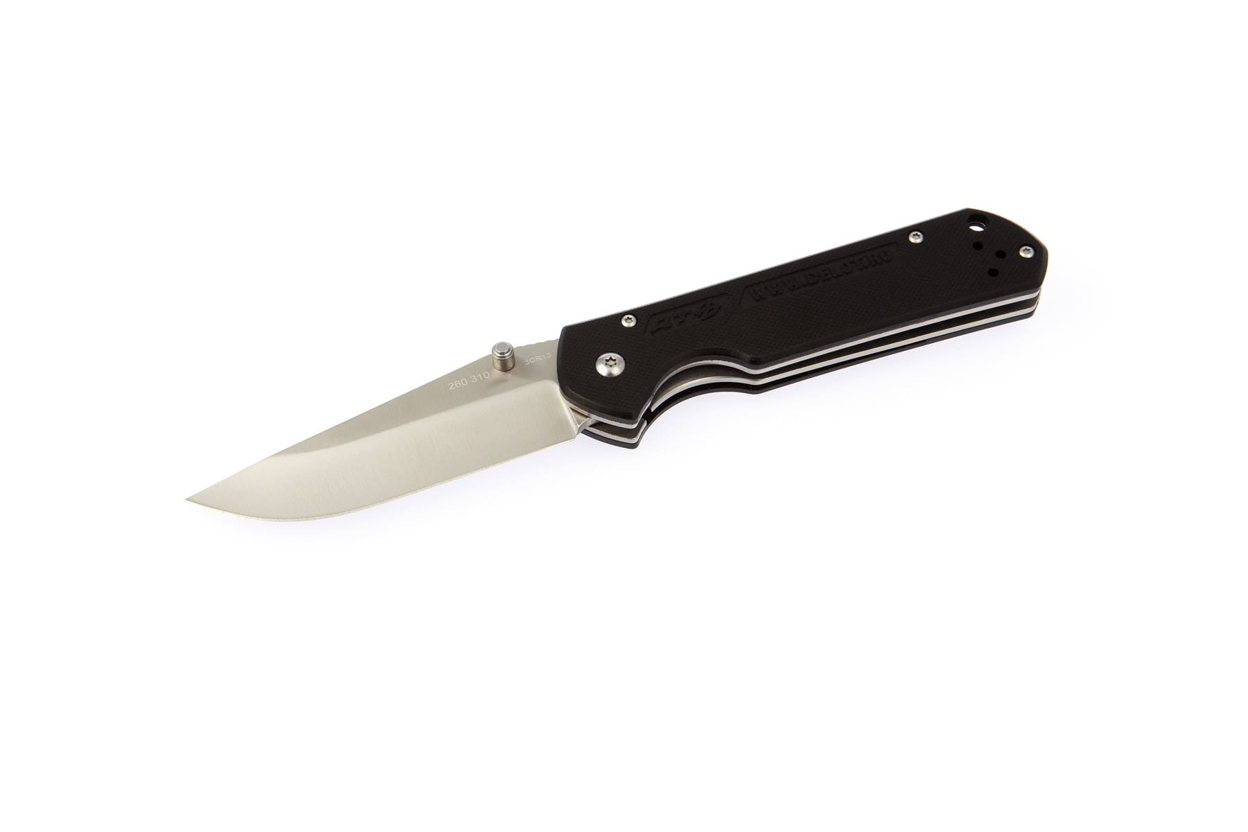 Нож оснащён фиксатором Liner-lock, надёжно удерживающим лезвие в открытом положении, а также ограничителем рукоятки для безопасной работы. Клинок выполнен из нержавеющей стали 3Сг13, что обеспечивает прочность и долговечность даже при интенсивном использовании. Рукоятка из нержавеющей стали с накладками из материала G10 не скользит в руке, не подвержена коррозии и имеет высокий запас прочности. Нож снабжен клипсой для крепления на поясе.