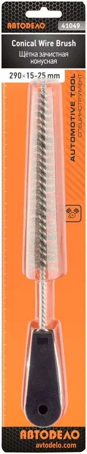 Длина щетки 290мм, длина рабочей части 150мм, диаметр 15-25мм.