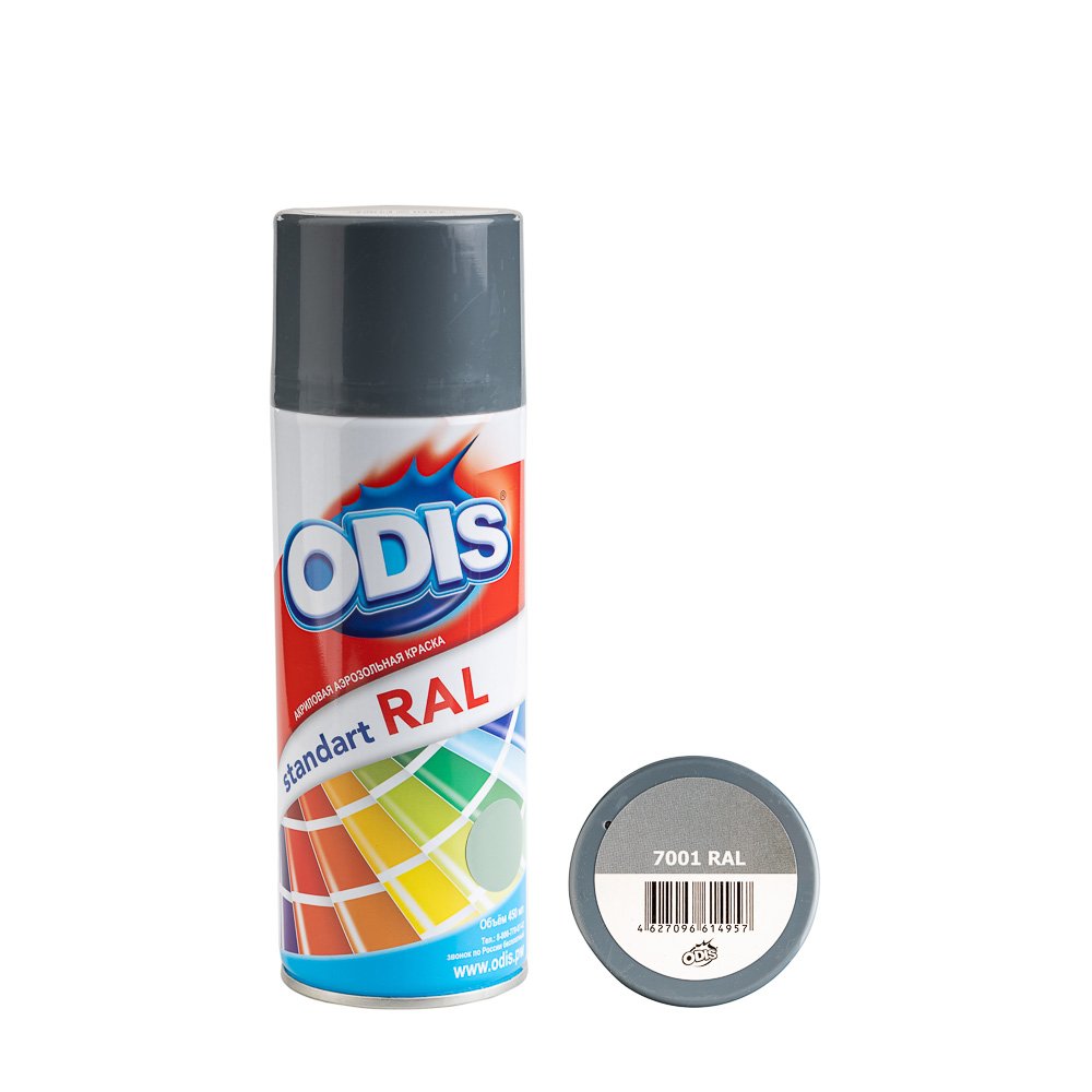 ODIS spray paint Standart RAL – обладает отличной укрывистостью, атмосферостойкостью и высокой адгезией к большинству поверхностей из различных материалов. Поворотный распылитель позволяет равномерно и экономично нанести краску на поверхность различных предметов. Полностью высыхает за несколько минут. При объеме 450 мл - вес готового пигмента (масса нетто) 290гр, что позволяет одним баллоном окрасить до 2.5 кв.м. в зависимости от цвета, количества слоев и типа обрабатываемой поверхности. Цвет соответствует европейскому стандарту RAL.