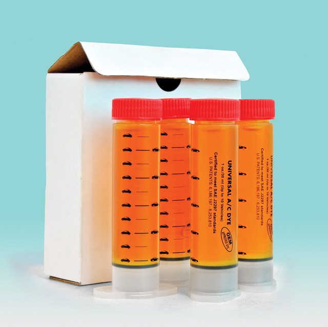 Жидкость (краситель) для определения мест утечек хладагента в системе кондиционирования, универсальная для профессионального применения. Улучшенная формула. Упаковка: 4шт по 30мл. Имеет спецификацию ОЕМ и сертифицировано по стандартам SAE J2297. Имеет патенты в США: 6,186,197-6,253,810. При применении с системой подачи «SpotGun», исключает необходимость сливать хладагент.
