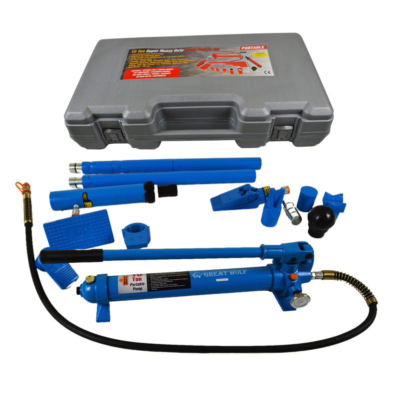 Гидравлическая растяжка Great Wolf 10 тонн GW-0410 с универсальными силовыми приспособлениями применяется для ремонта кузовных элементов легковых автомобилей, грузовиков, сельскохозяйственной и тяжелой техники.