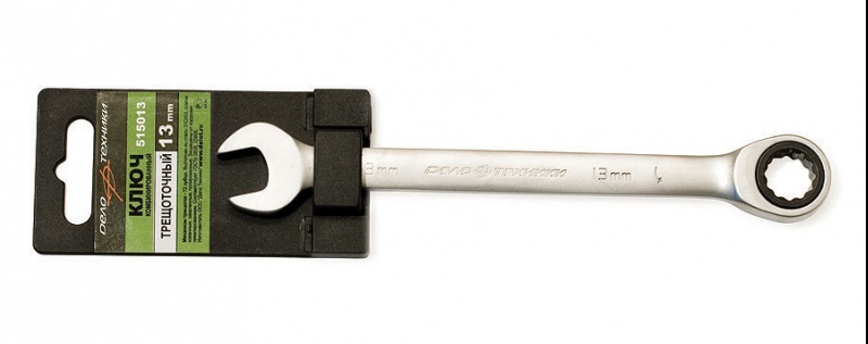 Трещоточная часть ключа не предназначена для срыва и силовой протяжки крепежа, для этого применяется рожковый профиль ключа или торцевые головки.